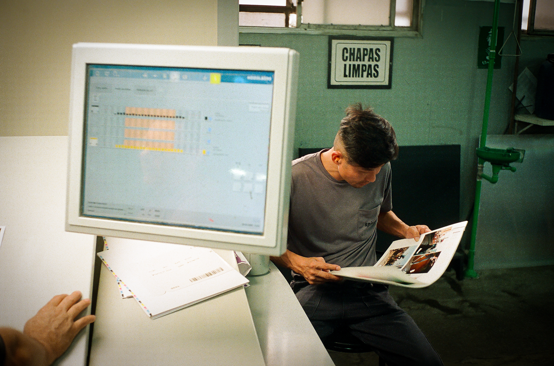 O papel correndo pelas máquinas, o ritmo mecânico da impressão, as provas de cor sendo ajustadas e o cheiro característico do impresso recém-saído da gráfica, mais do que documentar etapas técnicas, a série revela a insistência em manter o impresso vivo em uma era dominada por telas.