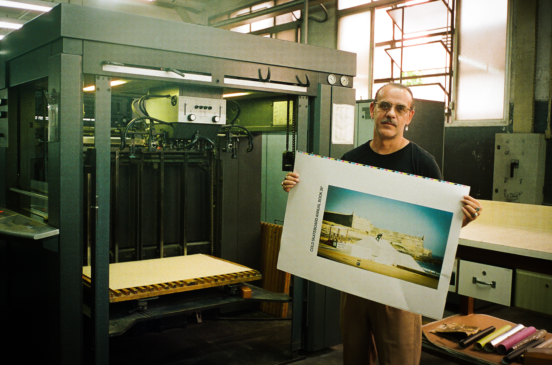 Ao direcionarmos o olhar para aqueles que tornam o projeto possível, a série amplia a compreensão do que é, de fato, produzir um livro. O Annual Book 2026 nasce do trabalho conjunto de fotógrafos como Jonathan Mehring, Bournout, Heverton Ribeiro, Graint Brittain e Flávio Samelo, que fotografaram skatistas como Tom Penny, Lance Mountain Rodrigo TX, Daewon Song e muitas outras lendas, e entregaram seus arquivos à equipe de design que sob a direção de arte de Luan Tanaka construíram o projeto. Em seguida todo esse trabalho foi encaminhado para a produção, nessa etapa, entram em cena operadores de máquina, técnicos de impressão e profissionais responsáveis pela encadernação e finalização do projeto. Funções distintas, contextos diferentes e realidades muitas vezes distantes entre si, mas que convergem para um mesmo objetivo.